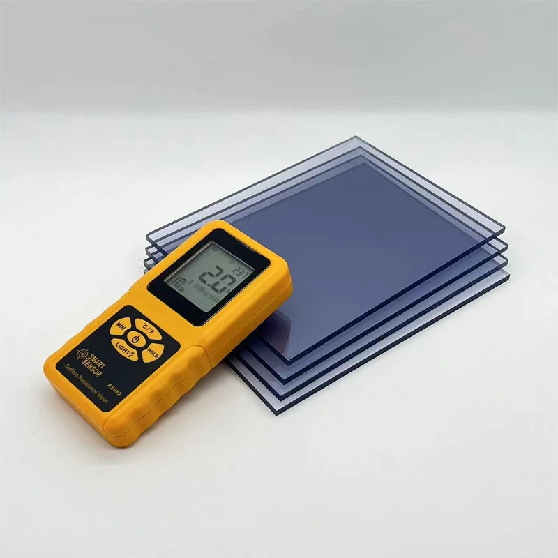 Per l'ambiente esigente della produzione elettronica, il foglio in PVC antistatico di Jiangsu Andisco offre controllo statico e durata superiori. La nostra innovativa tecnologia di rivestimento fornisce uno strato antistatico permanente che previene l'accumulo di polvere e elettricità statica, garantendo sia la sicurezza dei componenti che un ambiente di lavoro più pulito. Con un intervallo di resistività superficiale compreso tra 10^6 e 10^8 Ω, il foglio previene in modo affidabile le scariche statiche, essenziali per proteggere le parti elettroniche sensibili.